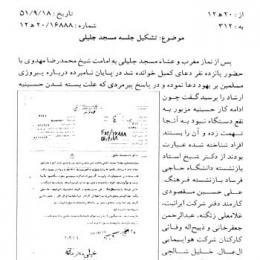 در تحقیقاتی که از احمد بیگدلی آذری[38] در زمینهی کشف اساسنامه به عمل آمده، اظهار میدارد: در حدود 20 ماه قبل اساسنامهی مورد بحث را ربانی شیرازی برای مطالعه و اظهار نظر به او داده که نامبرده نیز در چند جلسه با ده نفر دیگر که بعضی از آنها در حوزهی علمیهی قم به شغل تدریس اشتغال دارند به مشاوره پرداخته، لکن پس از تبعید آیتالله خمینی این جلسات متوقف میگردد.