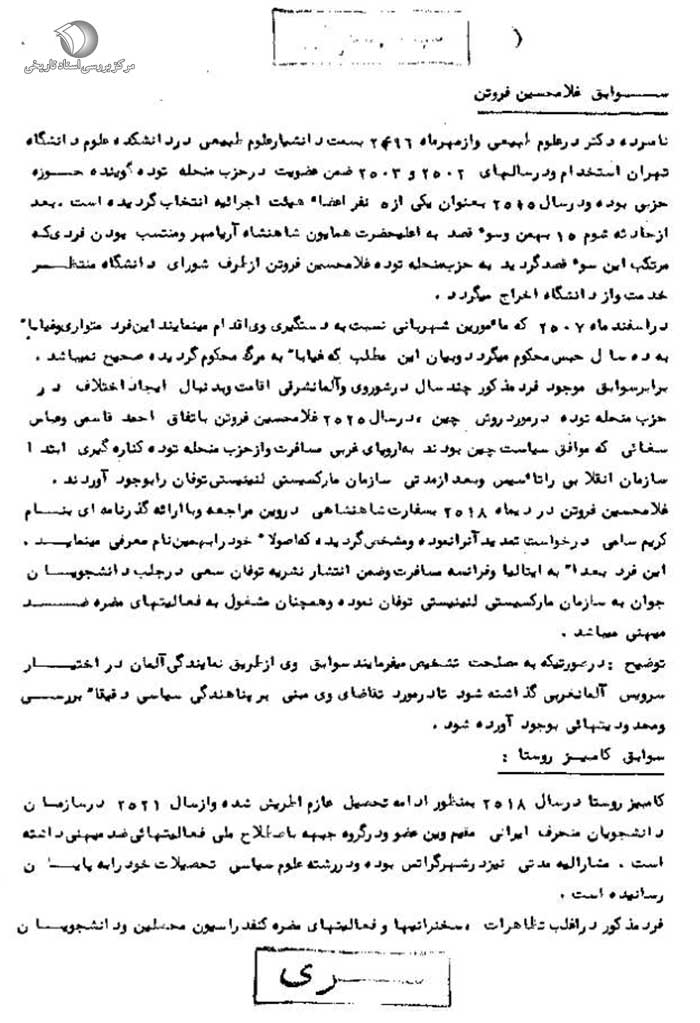 سوابق غلامحسین فروتن از اعضای بنیانگذار توفان
