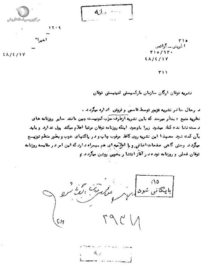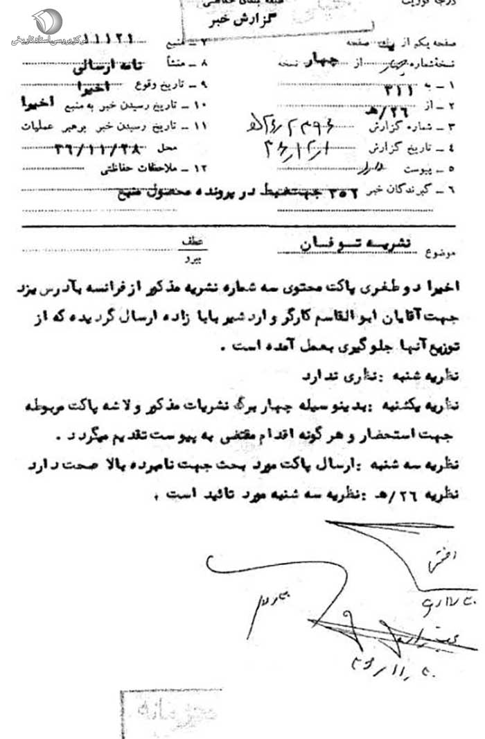 جلوگیری از توزیع نشریه توفان توسط ساواک در کشور