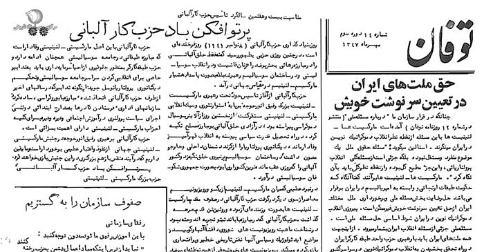 عملکرد و مواضع حزب توفان تا انقلاب اسلامی