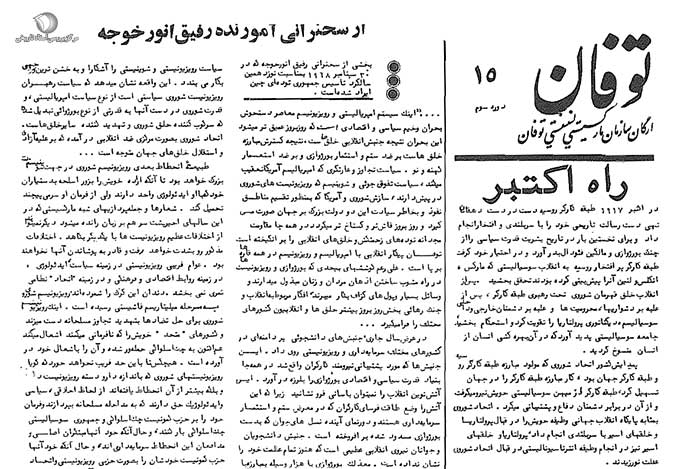 نشر سخنان انور خوجه در نشریه توفان آبانماه 1347