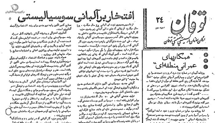 [23] نشریه توفان، «افتخار بر آلبانی سوسیالیستی»، دوره سوم، شماره 24، مردادماه 1348، ص 1.