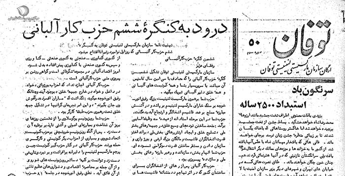 تبریک به مناسبت ششمین کنگره حزب کار آلبانی در نشریه توفان مهرماه 1350