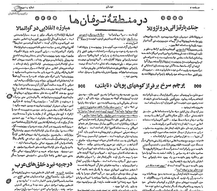 [31] نشریه توفان، «در روستاهای ایران»، دوره سوم، شماره 16، آذرماه 1347، ص 1.