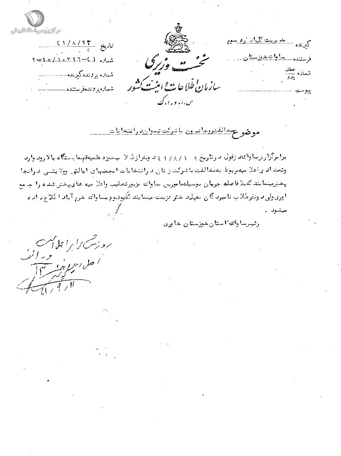 مخالفت روحانیون خوزستان با شرکت نسوان در انتخابات.