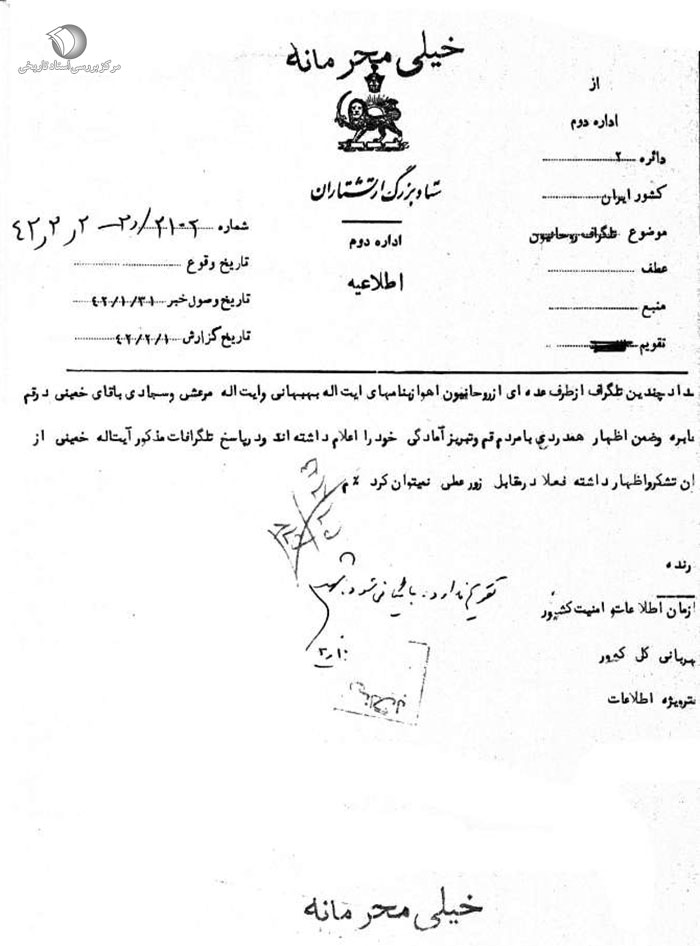 [54]. امام به روایت اسناد ساواک، آیت الله عبدالرسول قائمی، پیشین، ، ص 170.