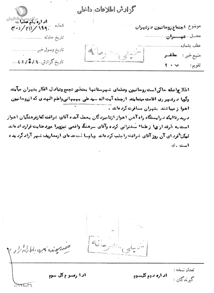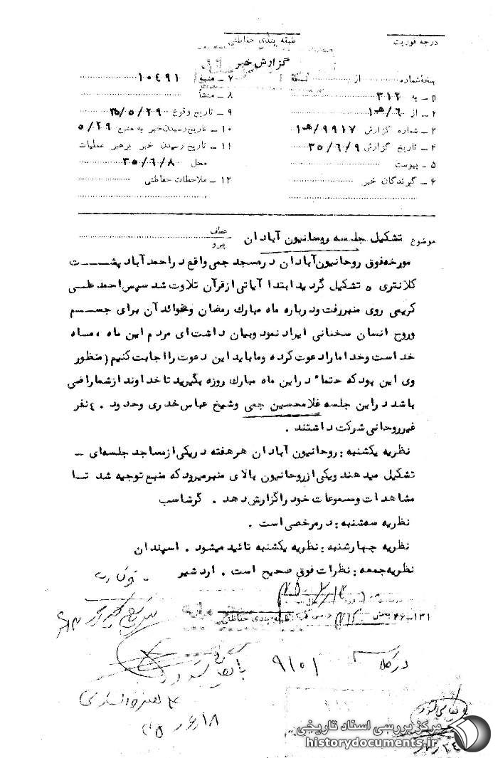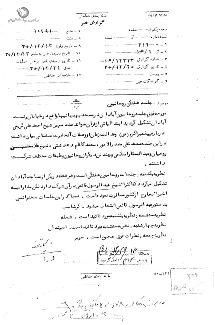 گزارش ساواک از جلسه هفتگی روحانیون آبادان.