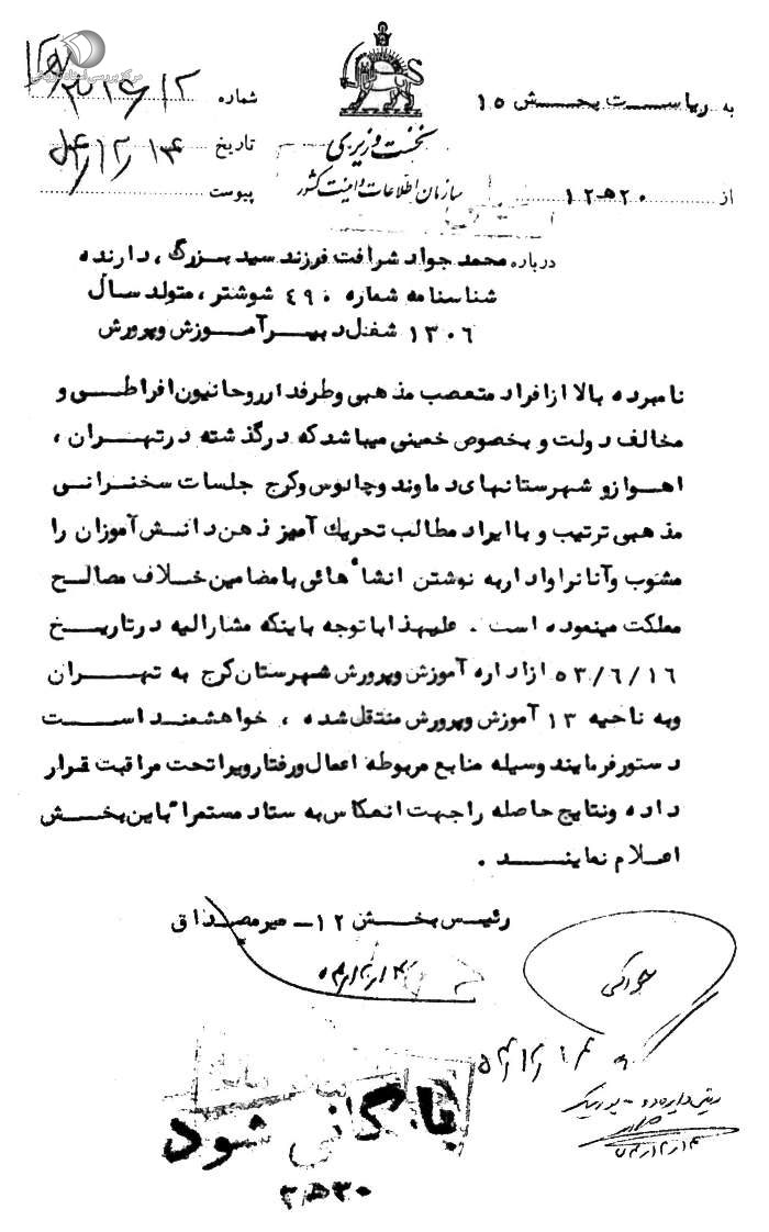[51] . یاران امام به روایت اسناد ساواک، حجتالاسلام غلامحسین جمی، تهران،1392، مرکز بررسی اسناد تاریخی، ص 19.