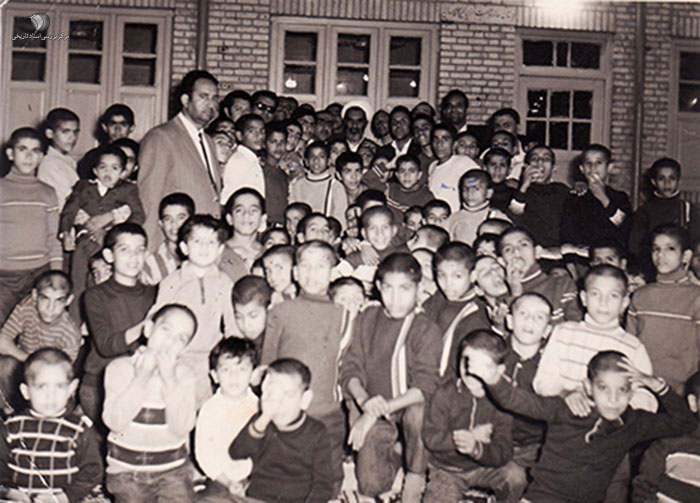 حجتالاسلام والمسلمین جمی در کنار روحانیون اعزامی از حوزه ی علمیهی قم به آبادان قبل از سال 1348.