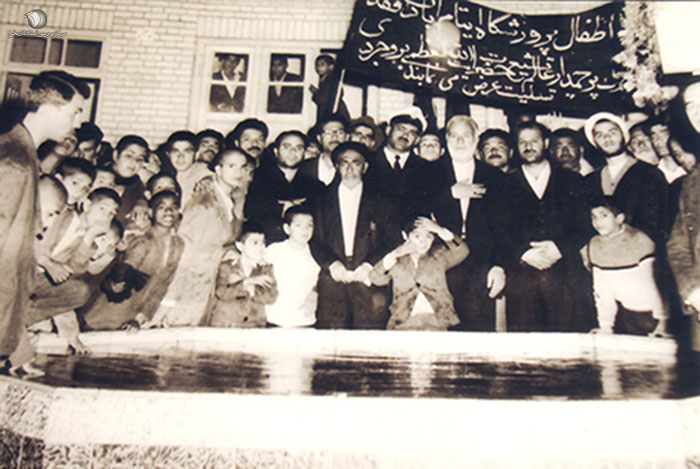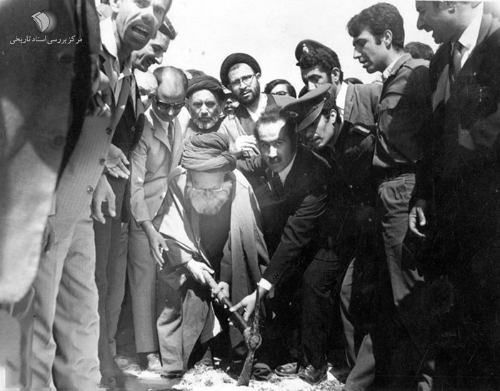آیتالله العظمی سید علی بهبهانی درحال برزمین زدن کلنگ احداث موسسه دینی دارالعلم دراهواز.
