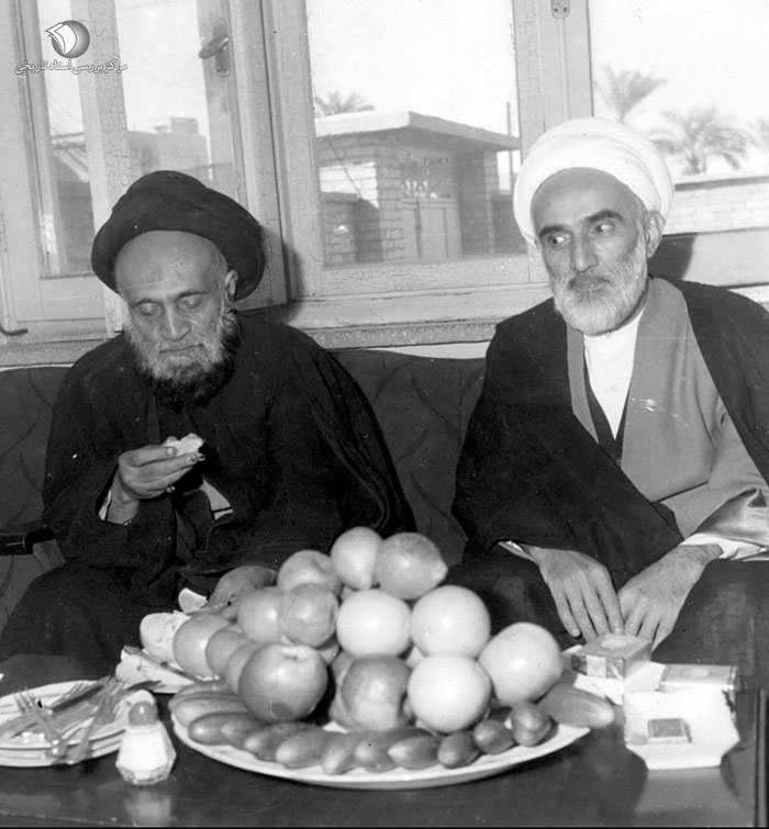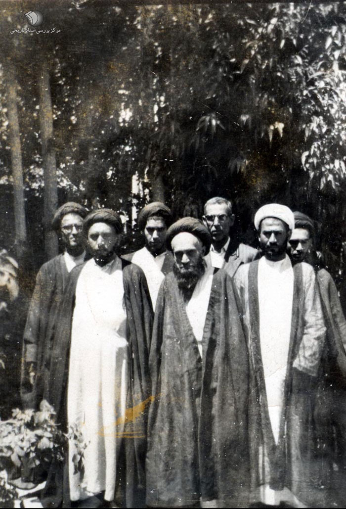 1342. قم،آیتالله العظمی سید علی بهبهانی در کنار حجتالاسلام والمسلمین علی دوانی.