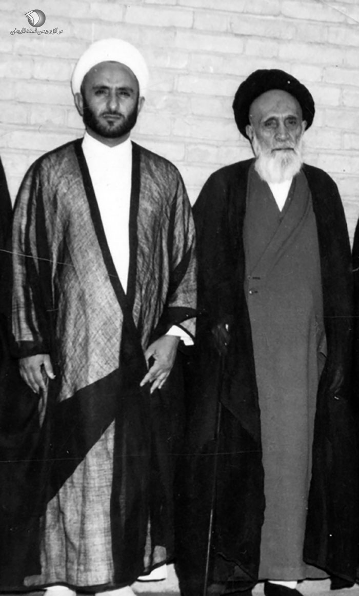 حجتالاسلام والمسلمین محمدتقی فلسفی درکنار آیتالله العظمی سید علی بهبهانی.