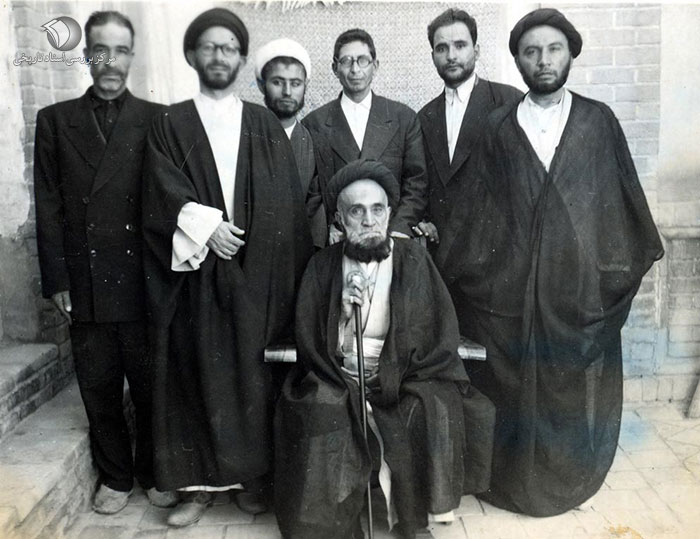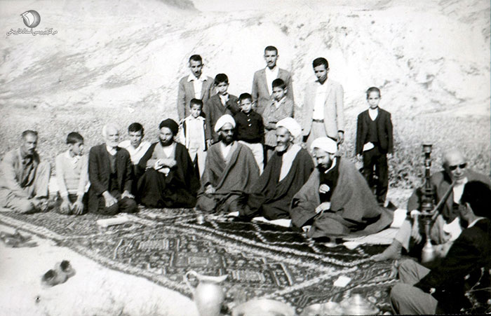آیتالله العظمی سید علی بهبهانی در جمع برخی اطرافیان ونزدیکانش درشهر اهواز.