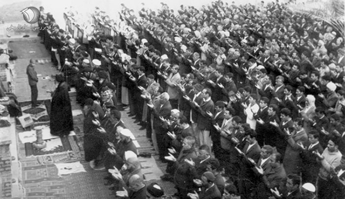 آیتالله العظمی سید علی بهبهانی درحال اقامه نمازعیدفطر در شهراهواز.