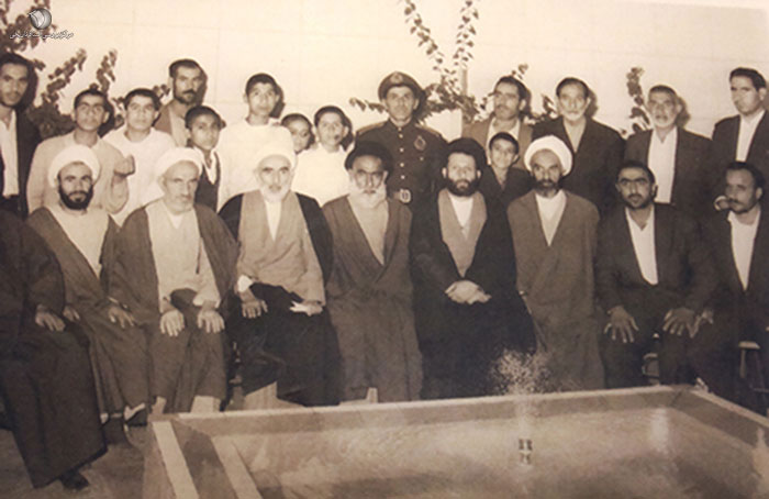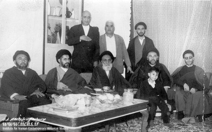 آیتالله العظمی سید علی بهبهانی در جمع برخی اطرافیان ونزدیکانش درشهر اهواز. درتصویر حجتالاسلام والمسلمین شیخ عباسعلی اسلامی دیده می شود.