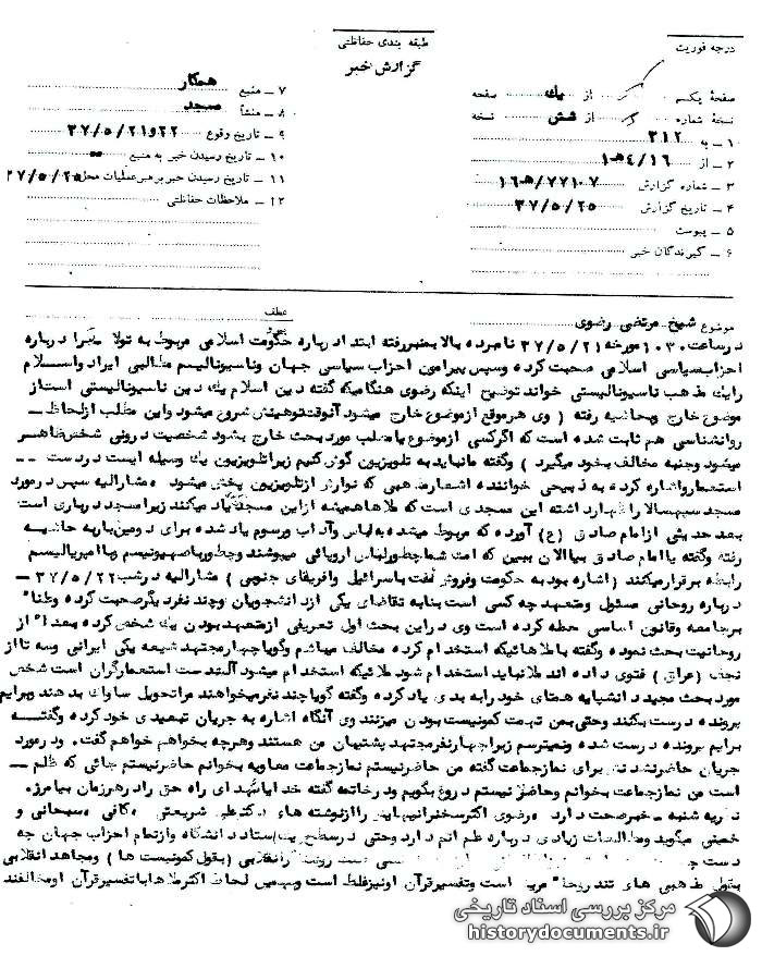تحلیل مأمور ساواک از تأثیر سخنان آیتالله مرتضی رضوی بر شنوندگان.