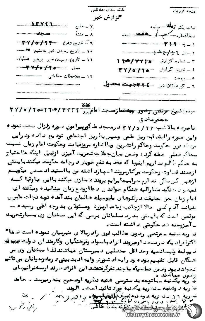 سخنرانی آیتالله مرتضی رضوی در مسجد امام جعفر صادق(ع) نقده و توهین به شخص شاه.