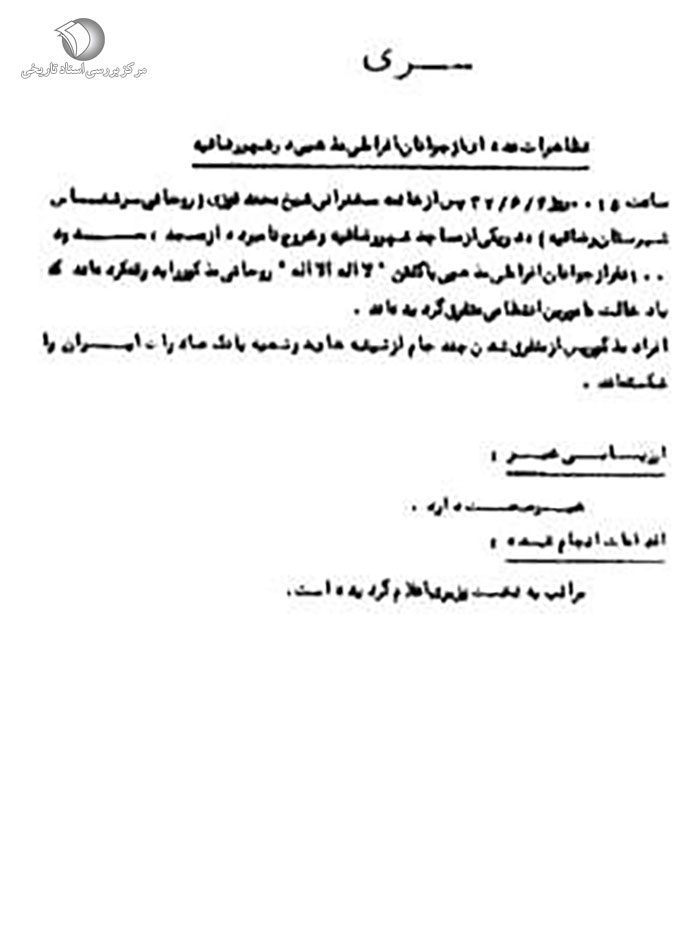 [48] . انقلاب اسلامی به روایت اسناد ساواک، تهران، 1381، مرکز بررسی اسناد تاریخی، چاپ اول، ج 9، ص 338.