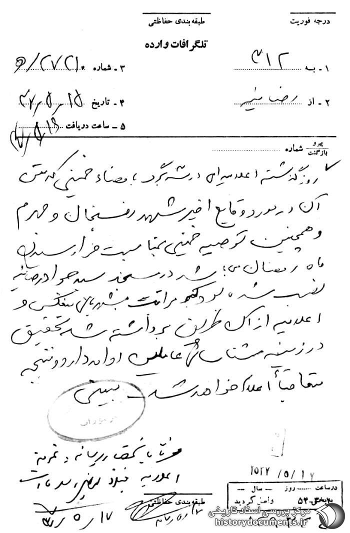 [27] . سند شماره 19، پیوست در همین مقاله.