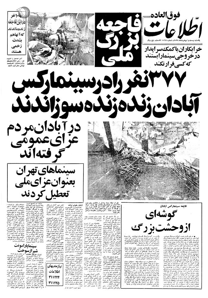 آتشسوزی سینما رکس آبادان (روزنامه اطلاعات: 29 مرداد 1357).