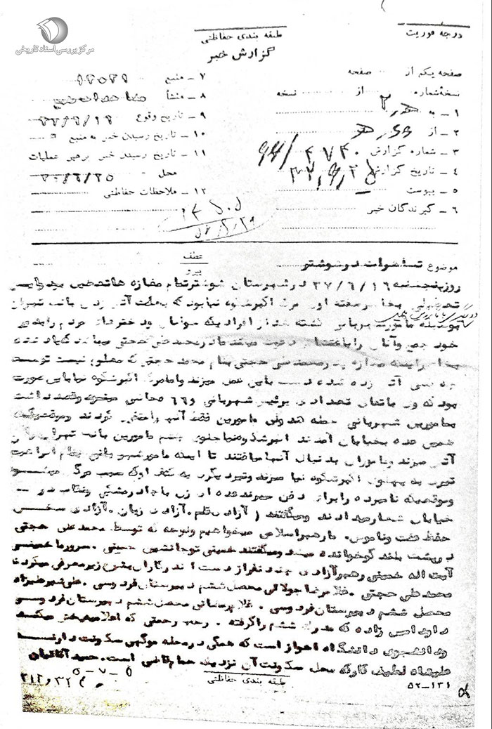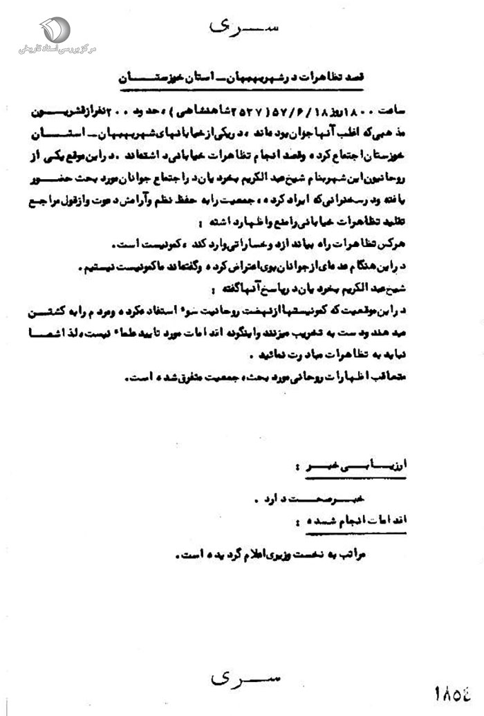 گزارش ساواک از تظاهرات در شوشتر پس از شهادت اکبر شکوهنیا.