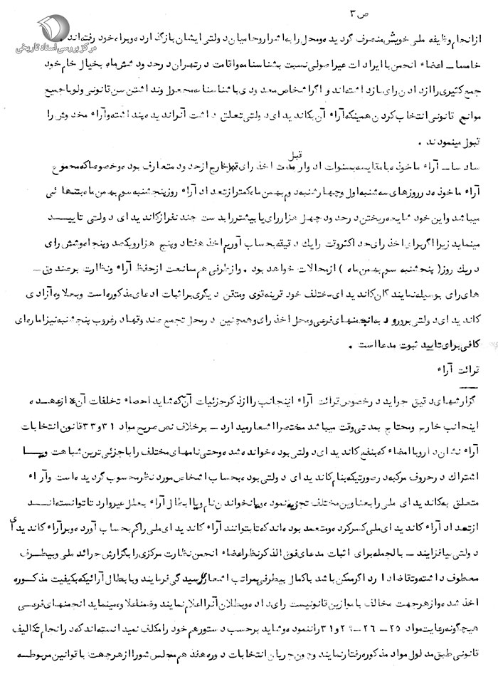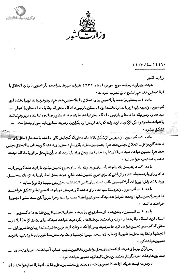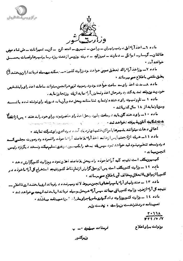 بخشنامه وزارت کشور به فرمانداریها و بخشداریها درباره اجرای تصویبنامه هیئت وزیران راجع به مراجعه به آراء عمومی درباره ابقا یا انحلال مجلس. ص 3.