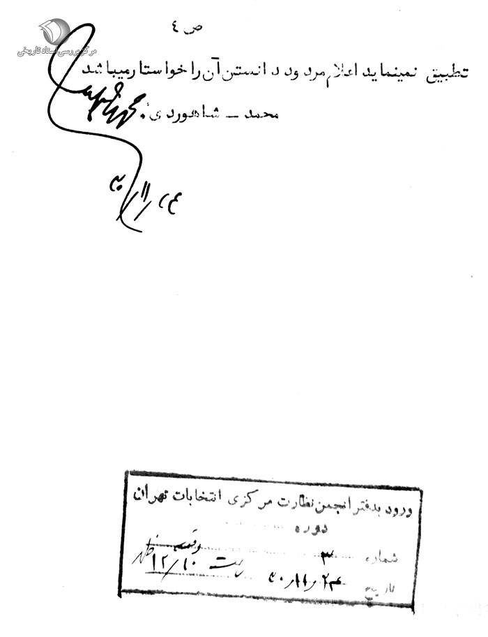 اعتراض محمد شاهوردی نسبت به انتخابات دوره هفدهم مجلس. ص 4.