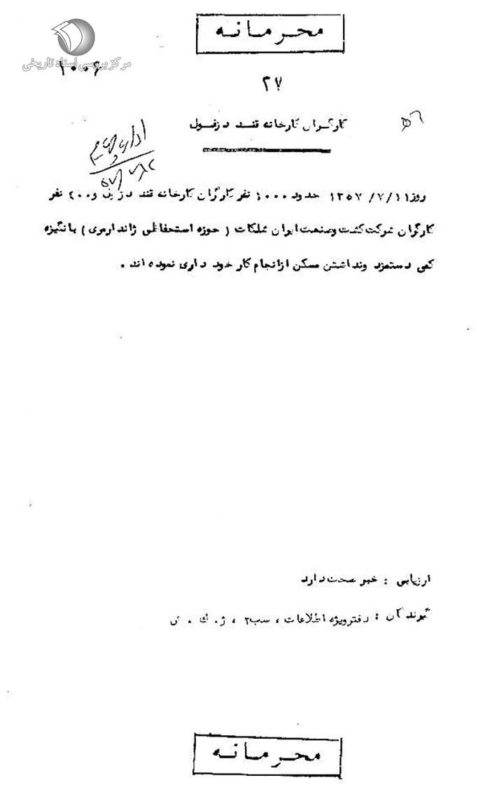 همچنین به گزارش ساواک: «روز 11 /7 /1357 حدود 1000 نفر کارگران کارخانه قند دزفول و 400 نفر کارگران شرکت کشت و صنعت ایران شلکات [شکلات] (حوزه استحفاظی ژاندارمری) به انگیزه کمی دستمزد و نداشتن مسکن از انجام کار خودداری نمودهاند.»[24]