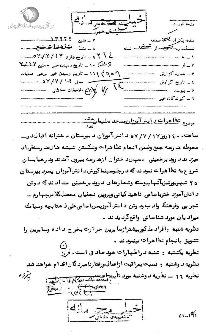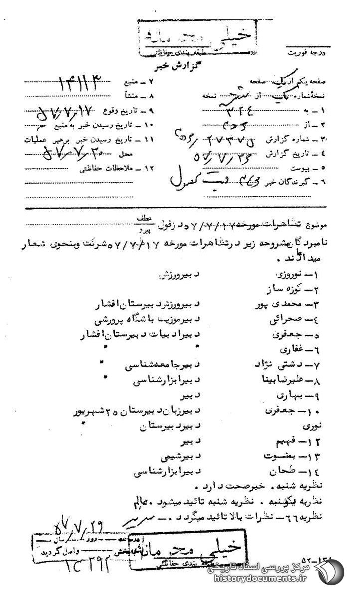 گزارش ساواک از شهدا و مجروحین تظاهرات 24 مهر در دزفول.
