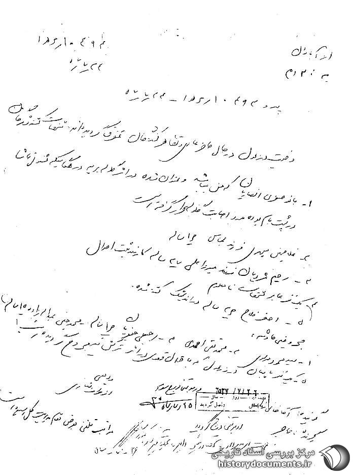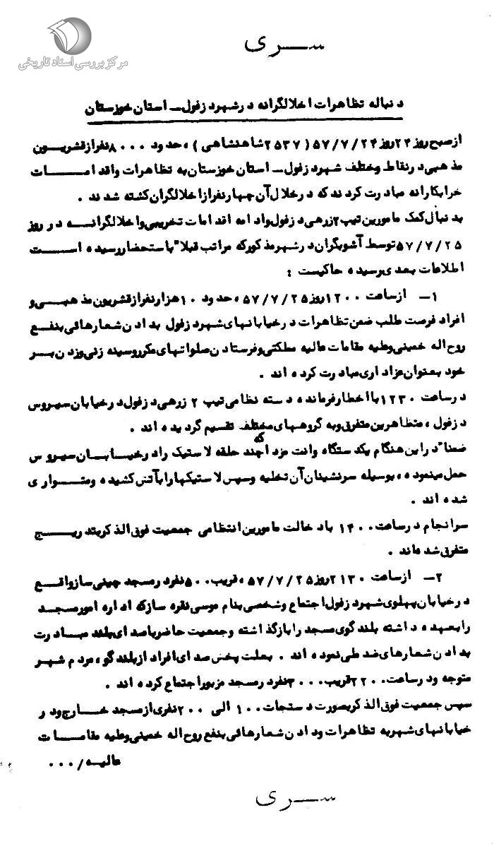 گزارش ساواک از اوضاع دزفول در روزهای 24 و 25 و 26 مهر 1357 ص 1.