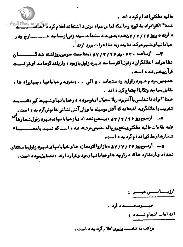 گزارش ساواک از اوضاع دزفول در روزهای 24 و 25 و 26 مهر 1357 ص 2.