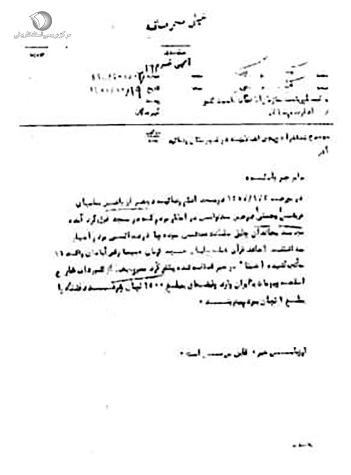 گزارش ساواک از ضرب و جرح یکی از مأموران ساواک در مسجد اعظم ارومیه در روز هفتم آذر 1357.