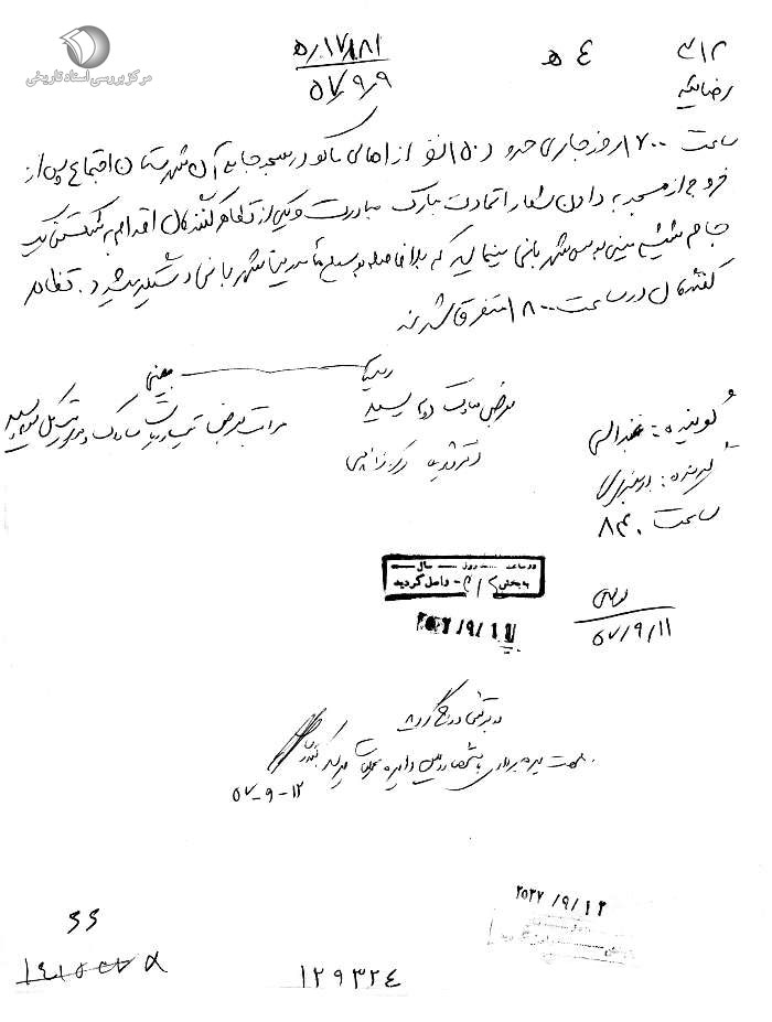 [19]. ر.ک به: سند شماره 9، پیوست در همین مقاله.