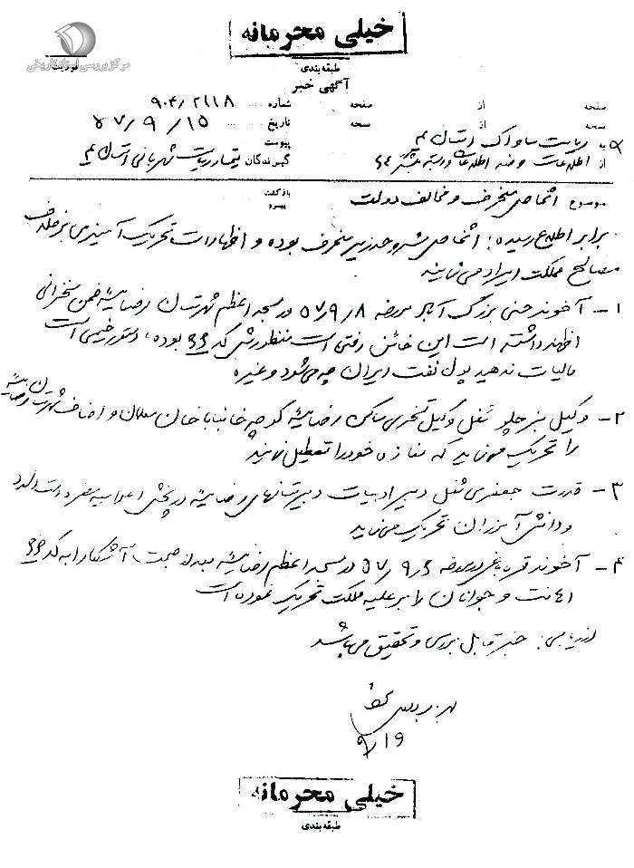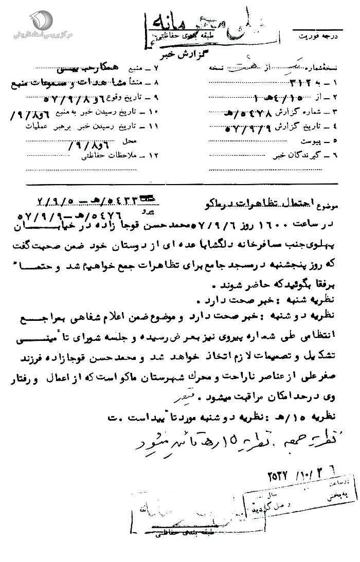 گذری بر انقلاب اسلامی در استان آذربایجان غربی به روایت اسناد ساواک- بخش نهم