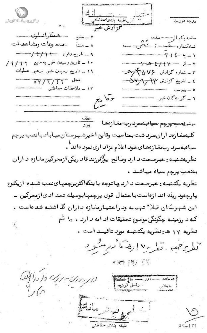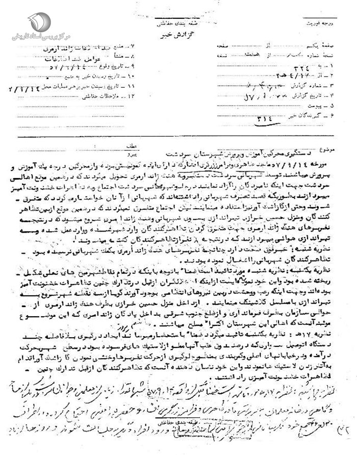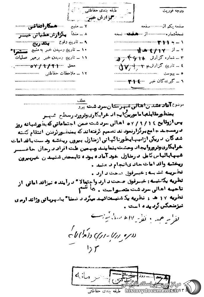گزارش ساواک از تداوم مبارزه مردم سردشت بعد از حادثه 14 آذر 1357.