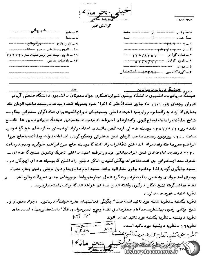 [8]. انقلاب اسلامی به روایت اسناد ساواک، تهران، 1384، مرکز بررسی اسناد تاریخی، چاپ اول، ج 17، ص 216.