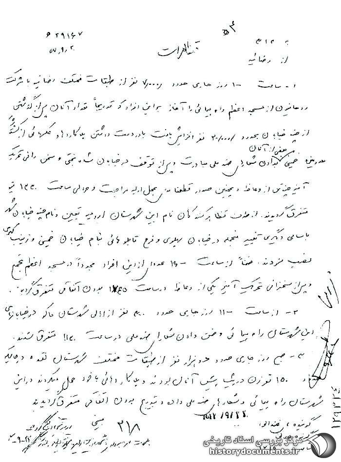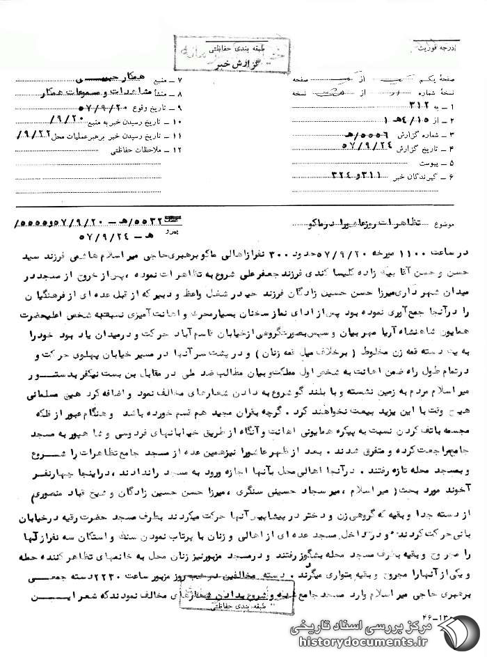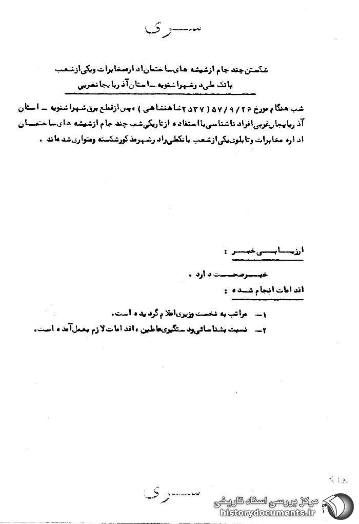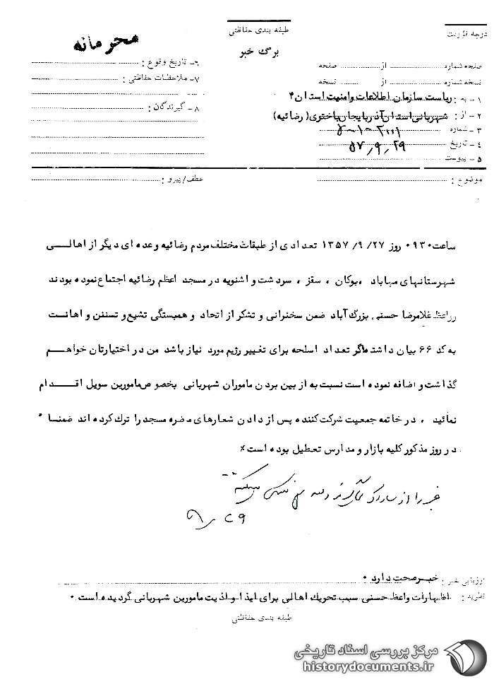 گزارش ساواک از تظاهرات روز تاسوعا در ارومیه (19 آذر 1357).