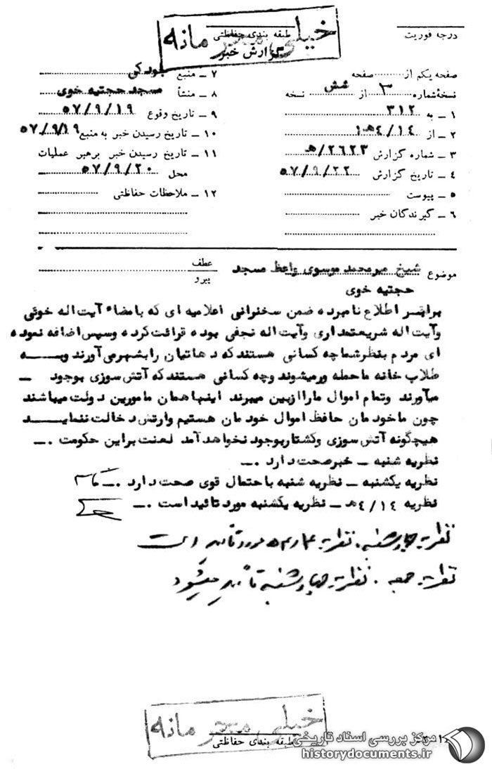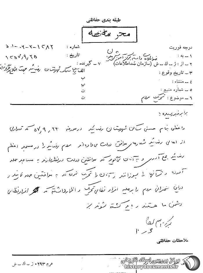 گزارش ساواک از تظاهرات مردم خویدر روز تاسوعا (19 آذر 1357).