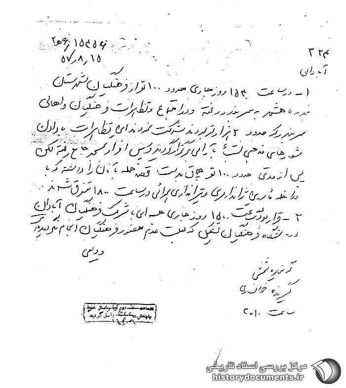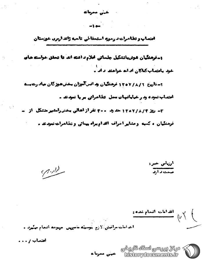 اعتصاب و تظاهرات در حوزه استحفاظی ناحیه ژاندارمری خوزستان روزهای دوم و سوم آبان 57.