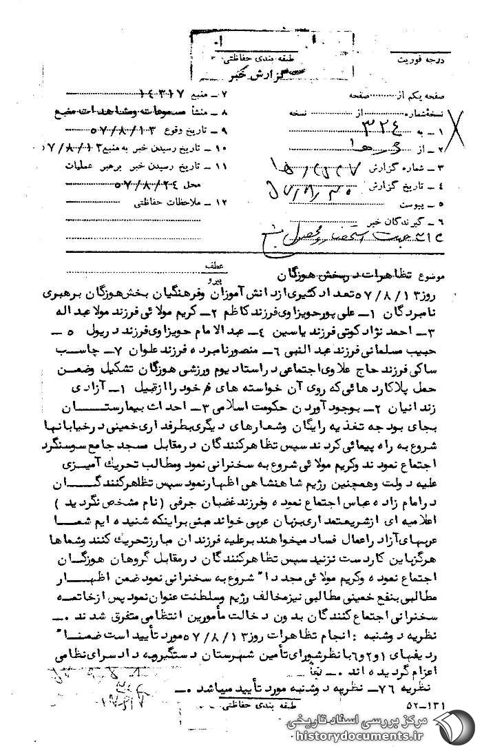 تظاهرات مردمی در شهرهای استان خوزستان در 10 آبان 1357 ص 1.