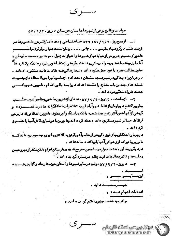 حوادث و وقایع برخی از شهرهای استان خوزستان در روز 20 آذر 57.