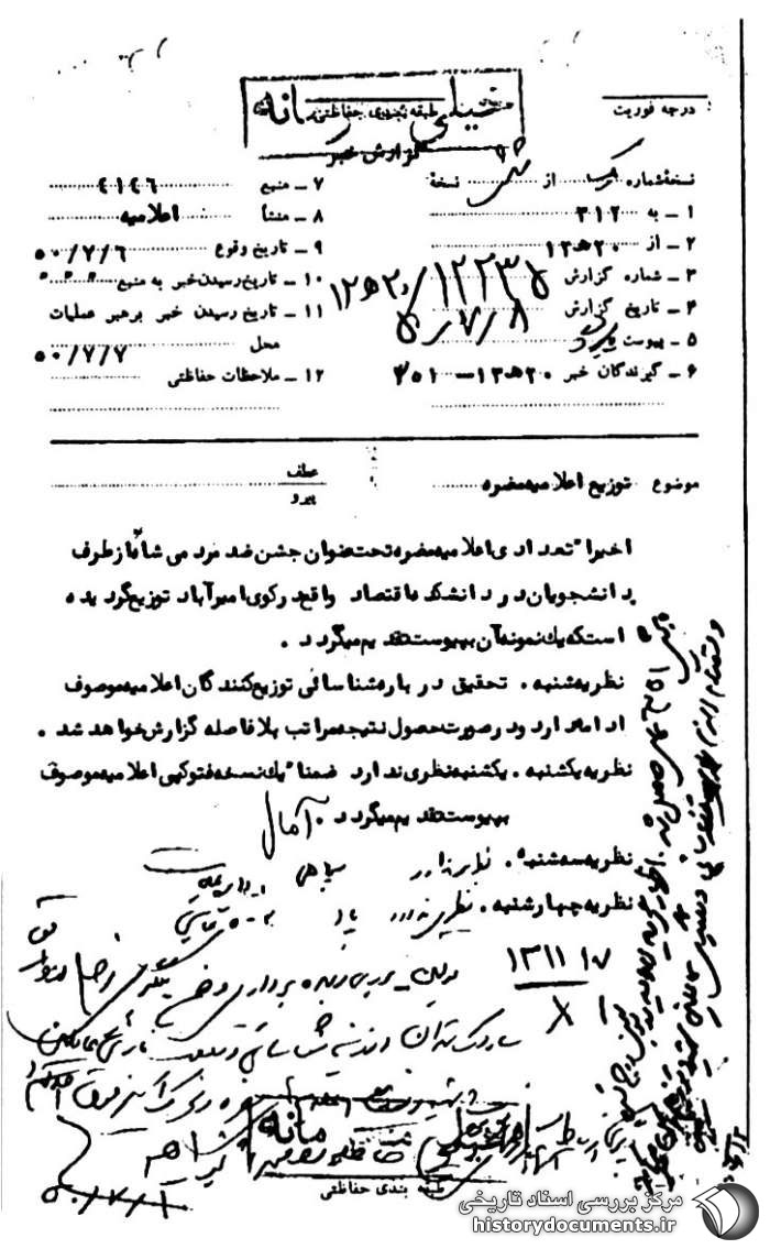 تشکیل جلسه کمیته اطلاعاتی استان سیستان و بلوچستان جهت مقابله با برهم زنندگان نظم به مناسبت چهلم شهدای 15 خرداد 1342ش.