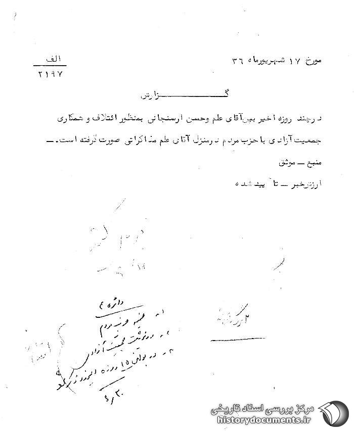 گزارش مأموران امنیتی رژیم شاه درباره احتمال ائتلاف جمیت آزادی و حزب مردم