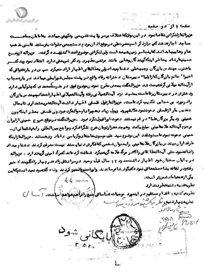 استاد محمدرضا حکیمی در کتاب ارزشمند حماسهی غدیر بار دیگر به این موضوع اشاره کرد و در این مورد نوشت: «و من نظریهی «....ذخیرةالله للشیعة» وی را که در تیرماه ۱۳۴۲ در اخلومد اظهار کرده بود، در «آوای روزها» آوردم. اجمالاً او هم معتقد به تأیید «روح خدا» بود. اخیراً نیز در تهران، چند روز پیش از آنکه به بیمارستان منتقل شود، شبی، بیش از یک ساعت، تأیید کرد و سخن از تأییداتی به میان آورد که کرده بود و از اینکه در این اواخر، به تأییدی جدی برنخاسته بود، اظهار تأسف عمیق میکرد.»[33]