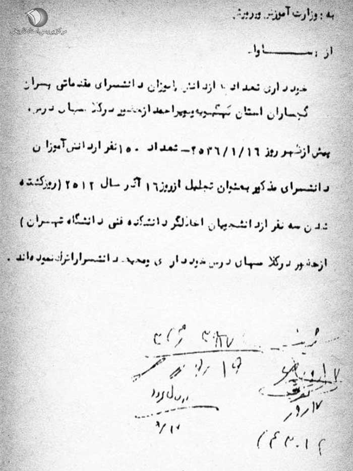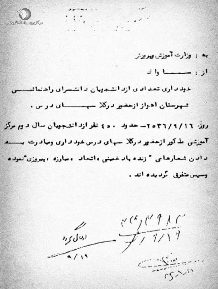 موضوع: خودداری تعدادی از دانشجویان دانشسرای راهنمایی شهرستان اهواز از حضور در کلاسهای درس
