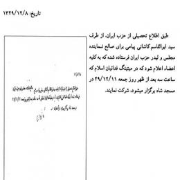 حضرت امام خمینی(ره) طی حکمی ثقهالاسلام شیخ علی مقدم را مأمور صورتبرداری و نگهداری اموال شاه و خاندانش در جزیره کیش کردند. این اموال پس از فهرستبرداری باید مورد مراقبت قرار میگرفت تا بعداً به مصارف لازمه و مشروعه برسد.