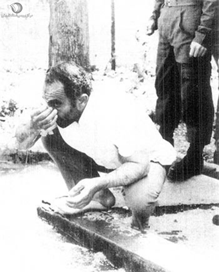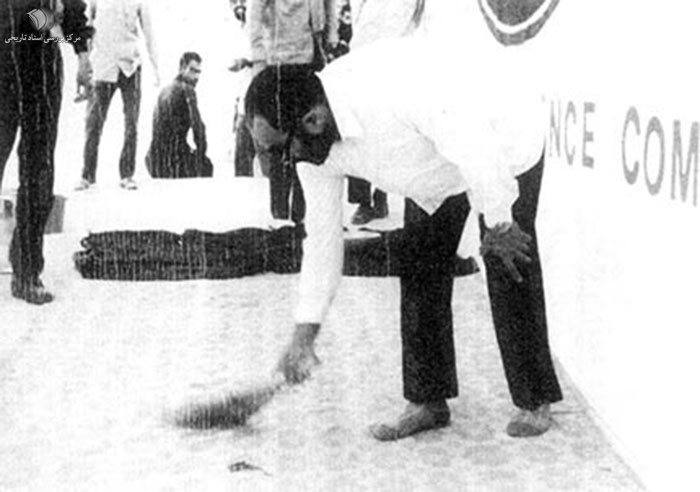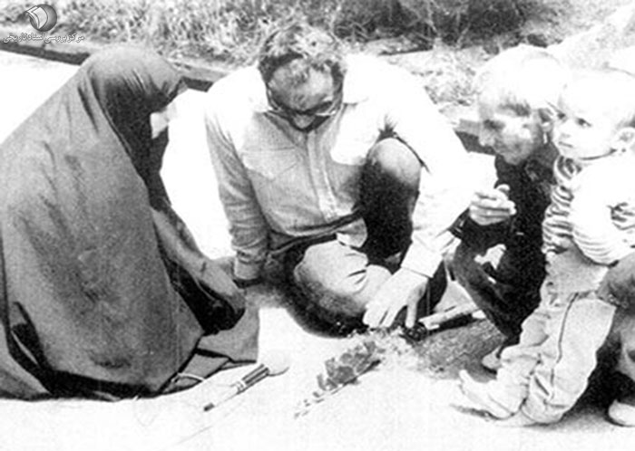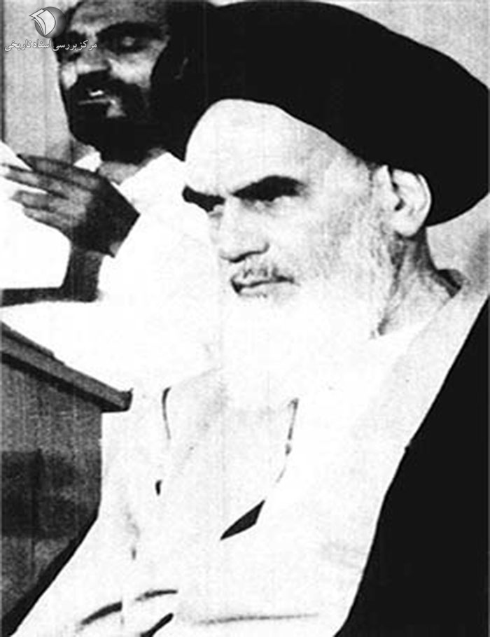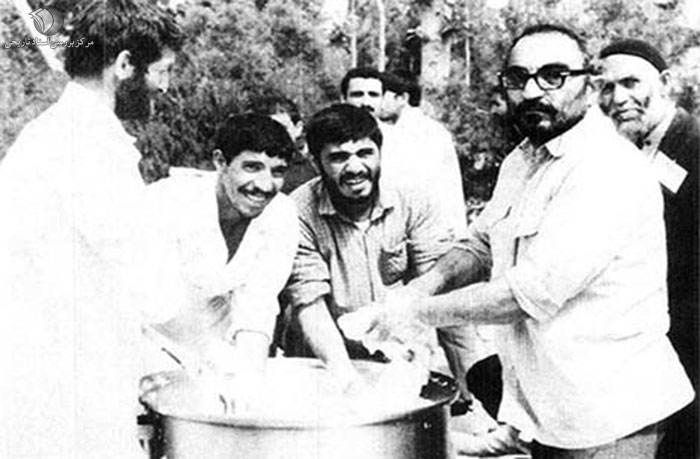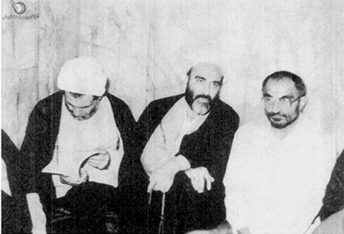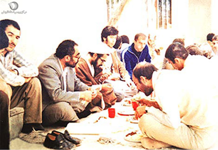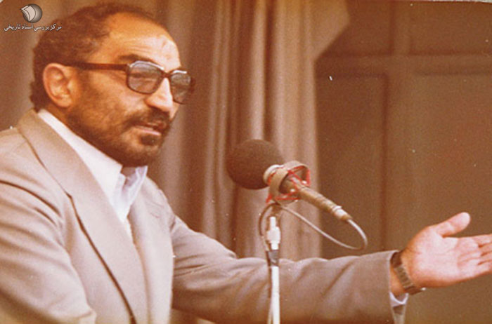 شهید لاجوردی در حال ارائه گزارش در محضر امام خمینی(ره)