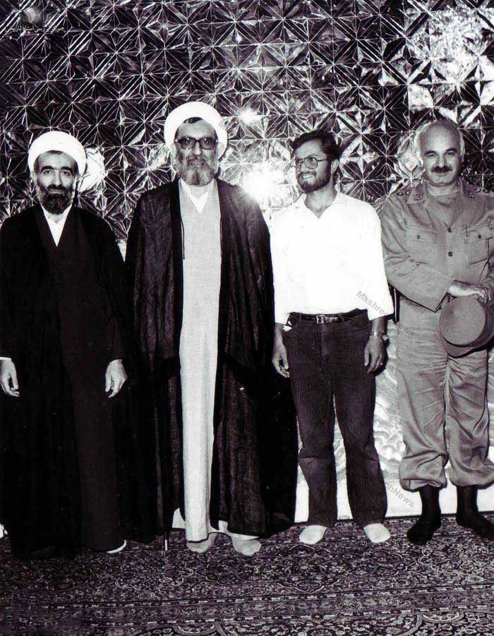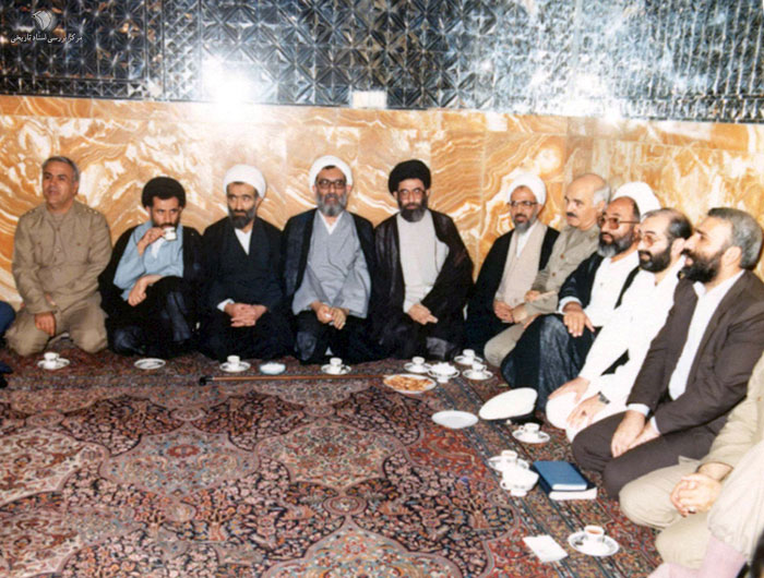 آیتالله ربانی املشی حرم مطهر رضوی مراسم غبار روبی در کنار رهبر معظم، واعظ طبسی، جوادی آملی، تیمسار ظهیر نژاد، سال 1361