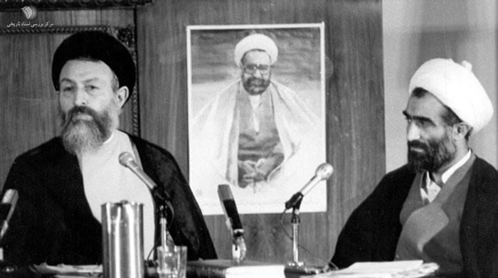آیتالله ربانی املشی در کنار شهید بهشتی در یک مصاحبه