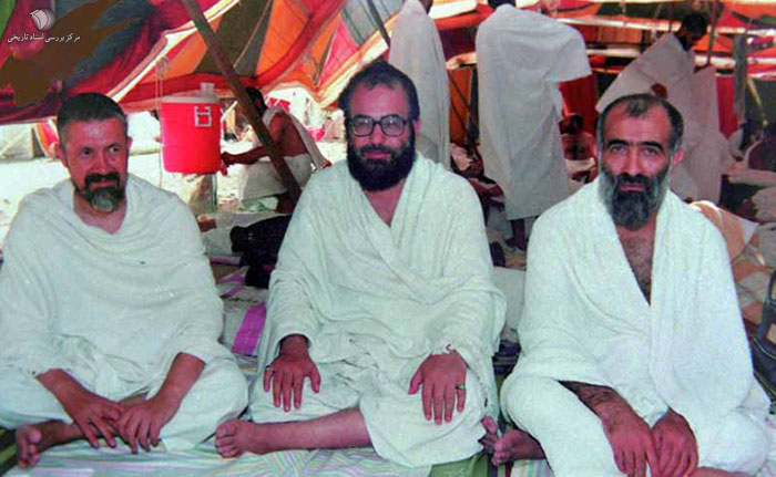 در مراسم حج در کنار شهید محلاتی آیتالله مؤمن